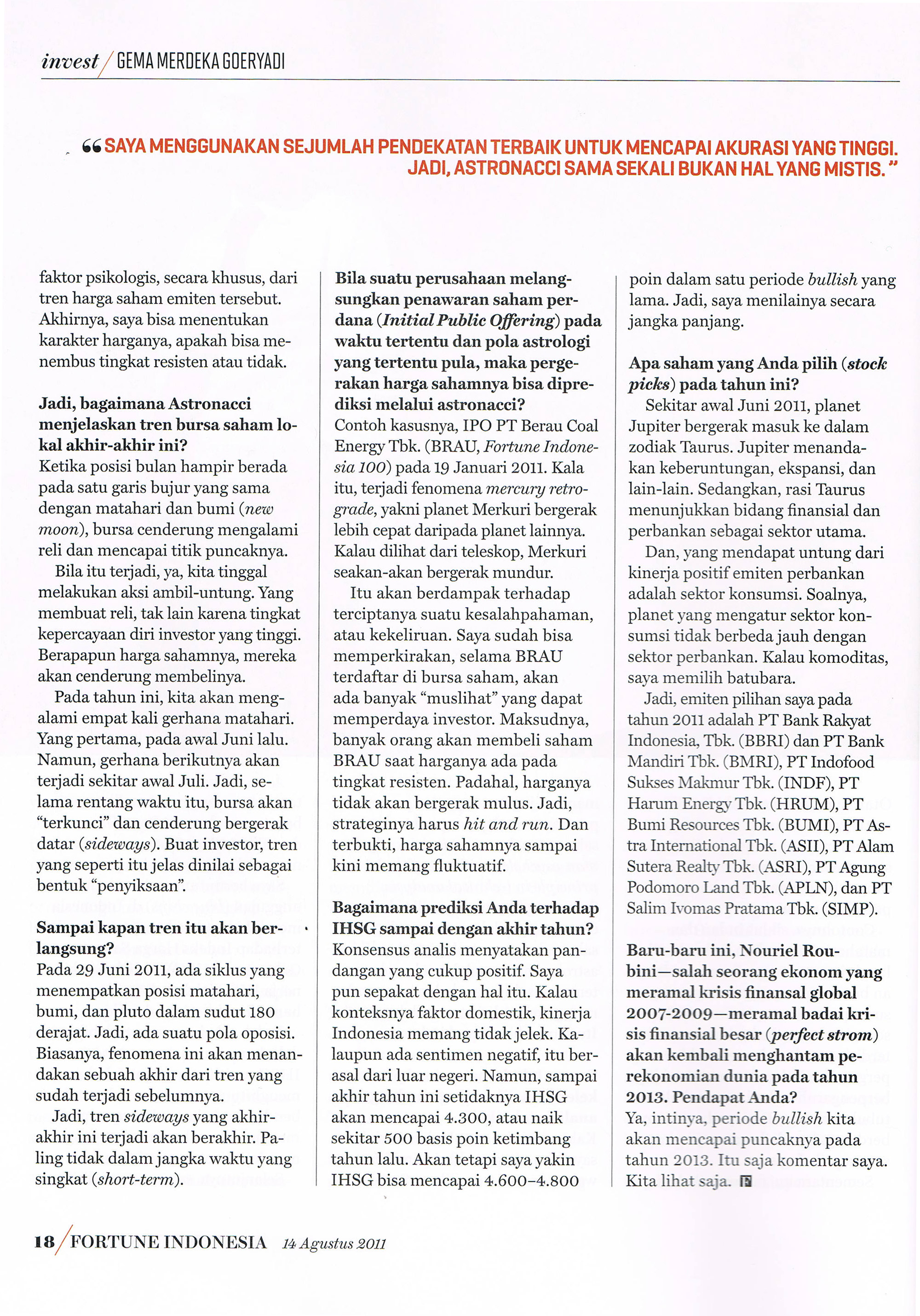 Gema Goeyardi Greets You in Fortune Indonesia August 2011